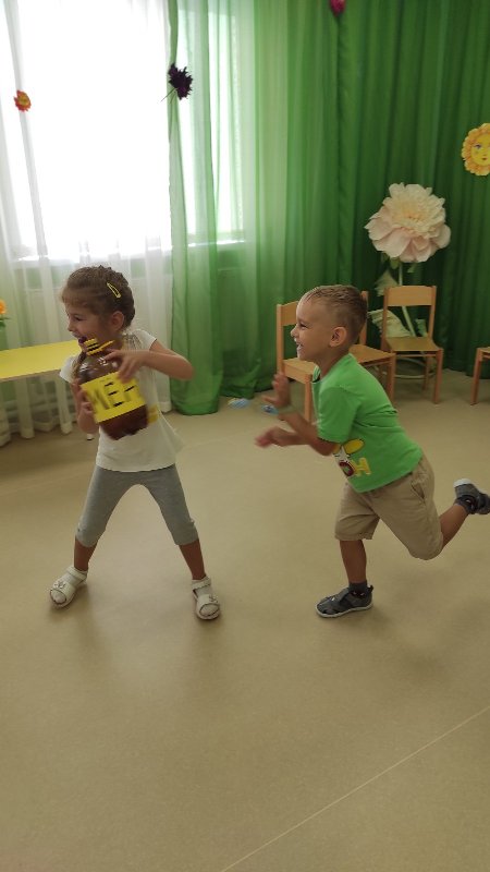 В течение лета ребята наблюдали, как трудятся маленькие пчёлки, как они собирают нектар с душистых цветов. Побывали на онлайн-экскурсии "В гостях у пасечника". Любопытно было узнать, как живёт пчелиная семья, кто какую работу в ней выполняет, за что мы ценим королеву пчёл, почему нам жалко трутней, как вскрывают улей. Познакомились и с приметами, связанными с медовым спасом, выучили пословицы и поговорки про мёд. И, конечно же, всё закончилось весёлым праздником-развлечением "В гостях у Медового Спаса". Ребята водили хороводы, отгадывали загадки, играли в командные игры "Кто больше нарисует цветов", "Передай бочонок Мёда", "Потрудись как Пчёлка", "Кто быстрее соберёт медоносные цветы", "Принеси нектар". В конце праздника ребята получили угощение.