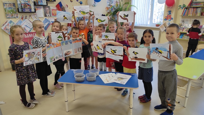 В этот день ребята подготовительной группы "Весёлые котята" узнали много нового о птицах нашего края. И, конечно, познакомились с книгами о пернатых, расширили свое представление о зимующих в наших краях птицах. Ребята играли, отгадывали загадки, отмечая особенности внешнего вида и повадки птиц. В ходе беседы решали проблемные задачи: какую пользу приносят птицы?