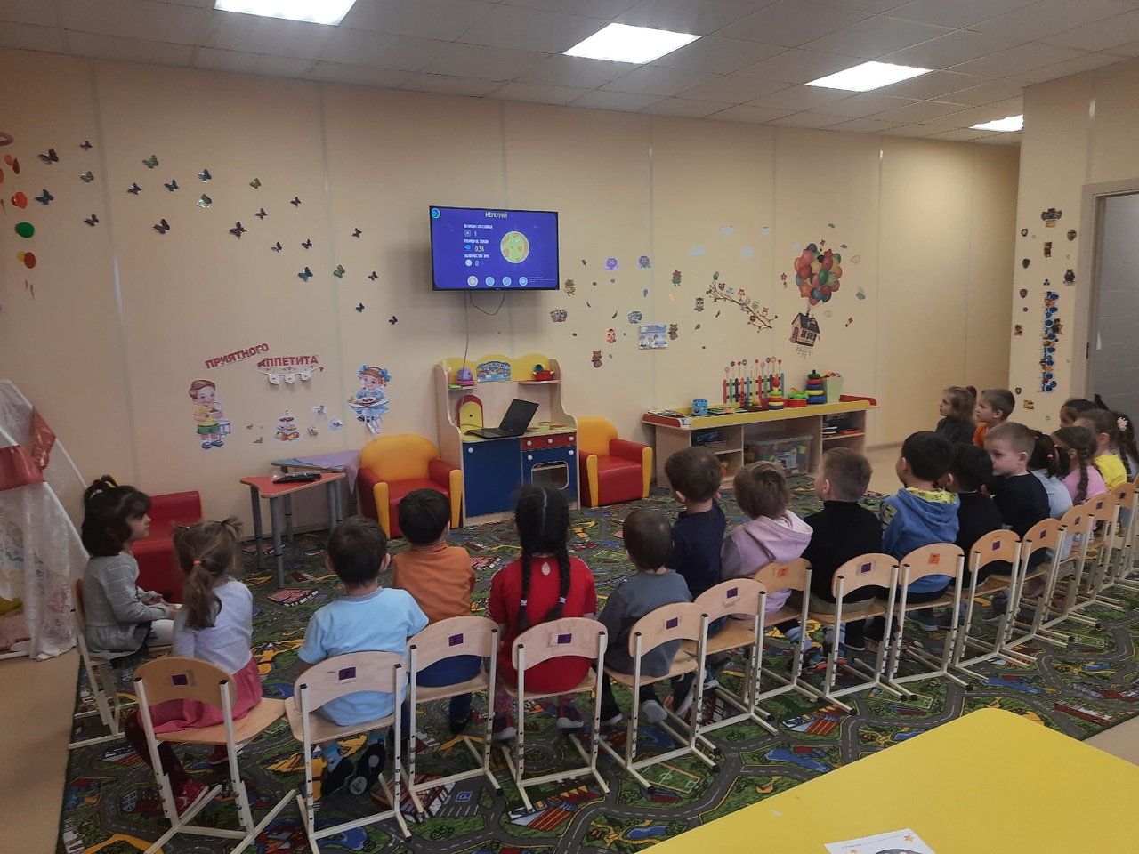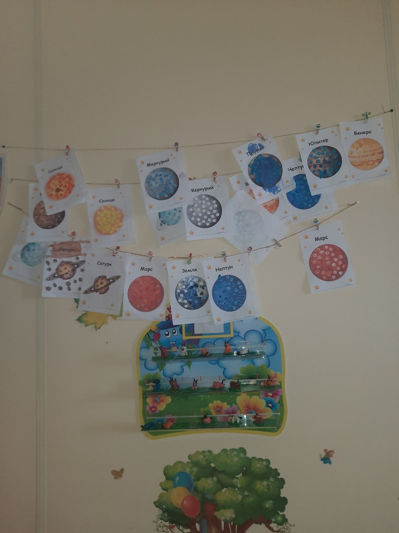 Ребята средней группы "Капельки" играли в космические игры, смотрели обучающие мультфильмы про космос,а так же рисовали планеты в нетрадиционной технике(ватными палочками).
