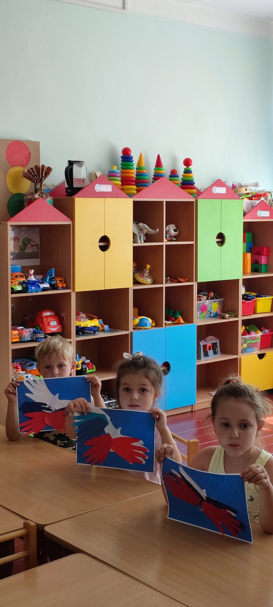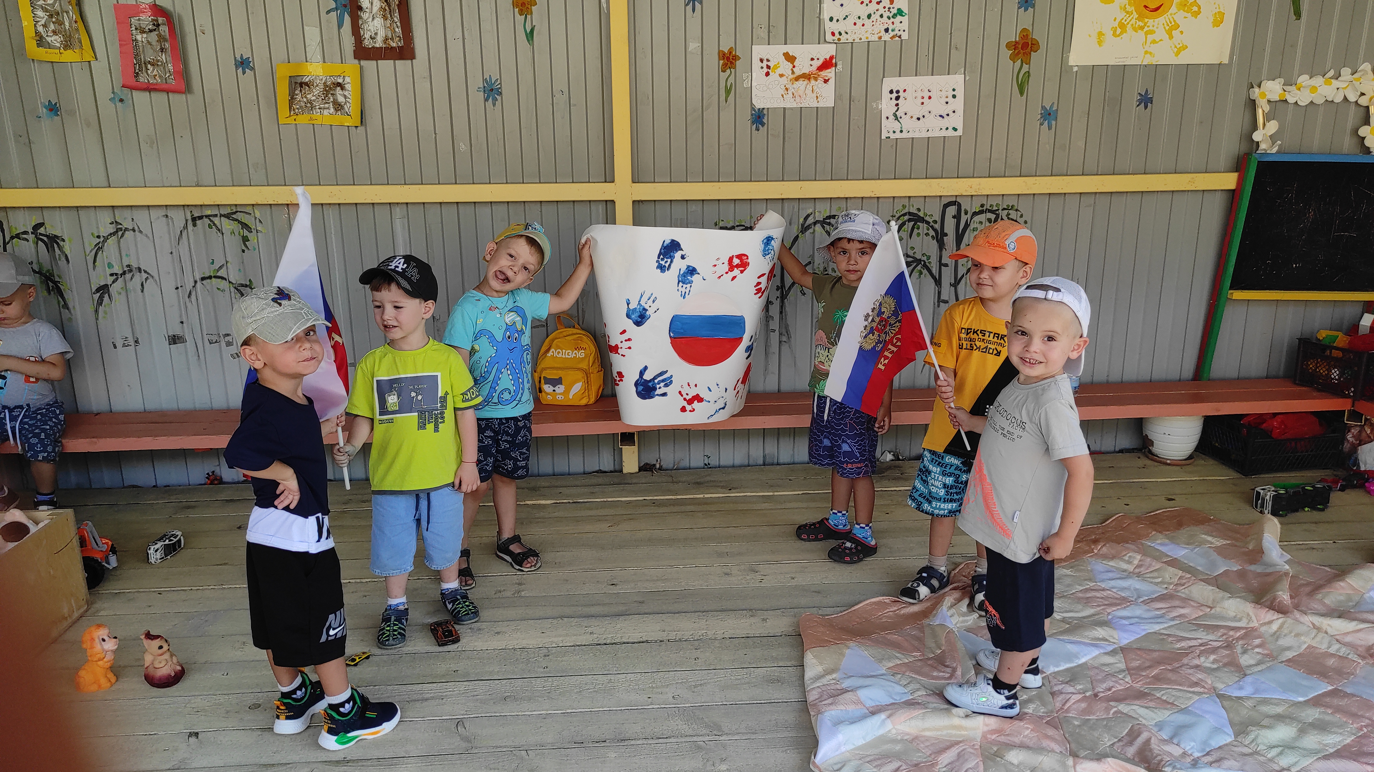 Накануне была проведена предварительная работа, где знакомили детей с государственными символами России, беседовали о стране, читали стихи, пословицы и поговорки о нашей Родине.