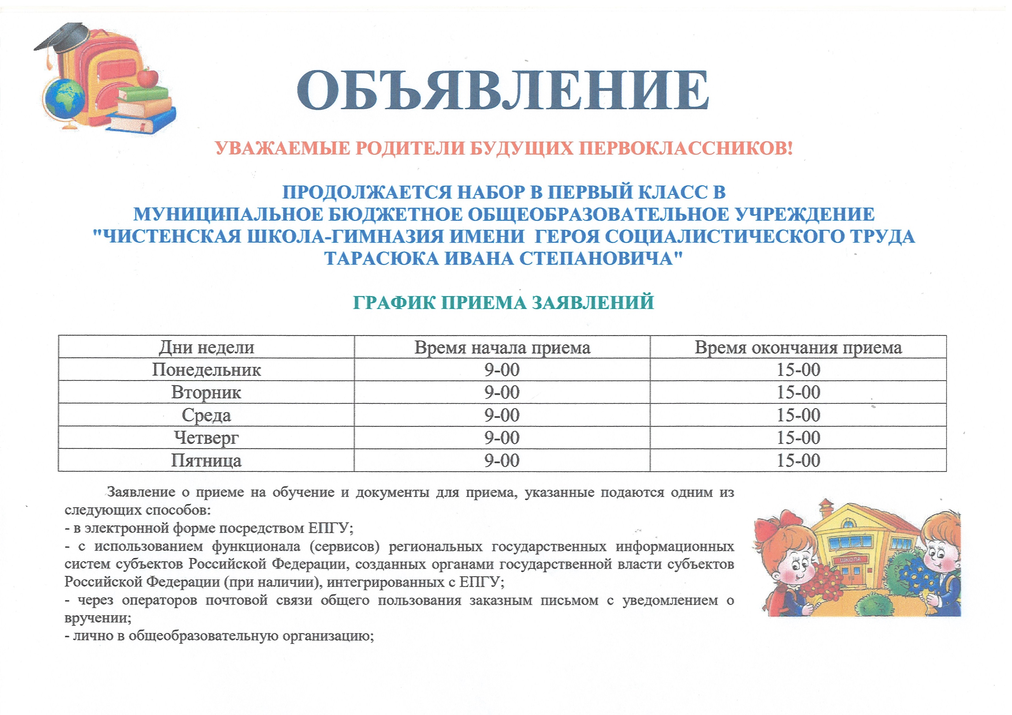ГРАФИК ПРИЕМА ЗАЯВЛЕНИЙ