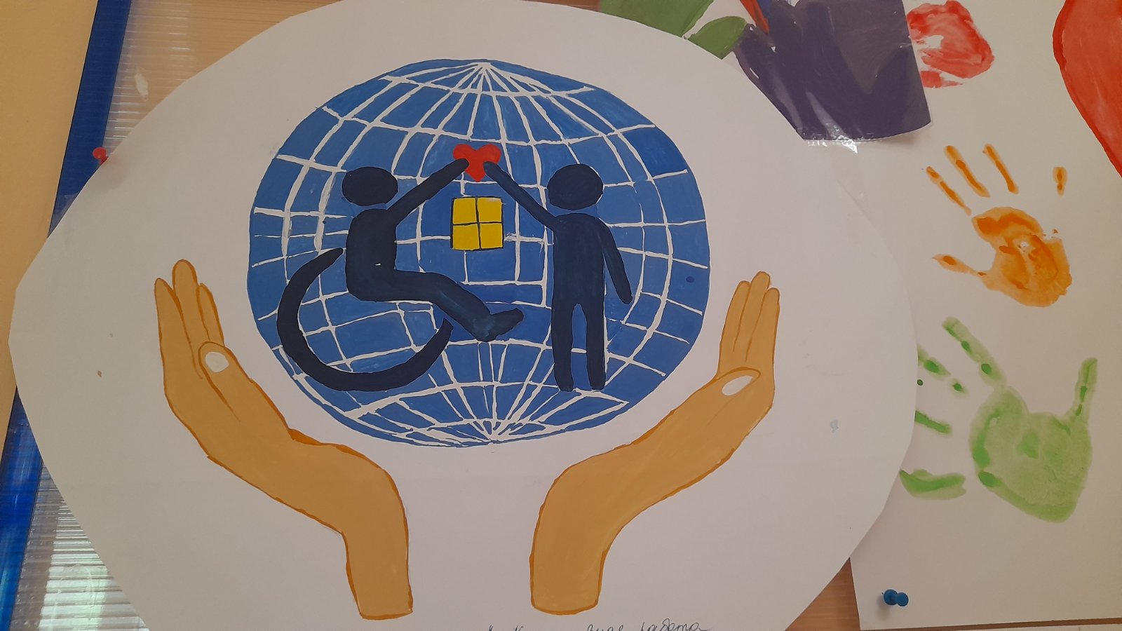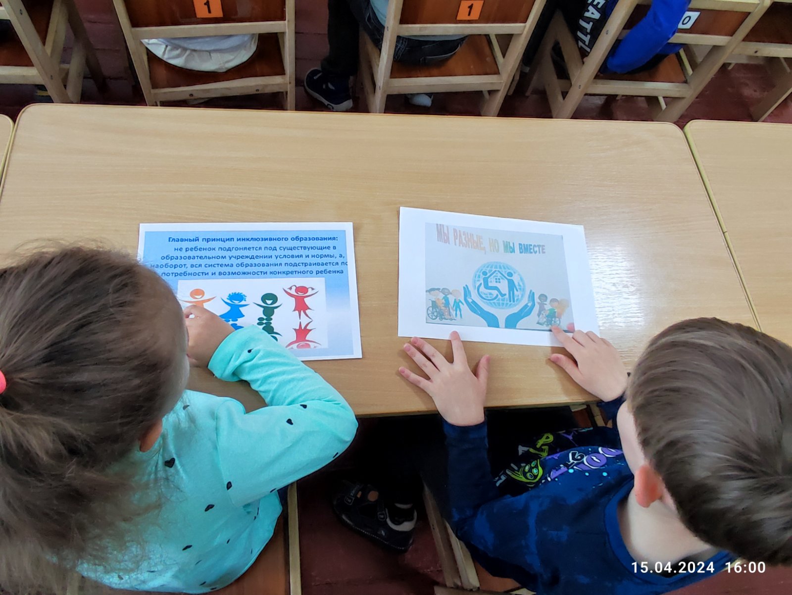 Детям были продемонстрированы видеоролики по теме инклюзии - "Дети должны учиться вместе", "Кино без барьеров", «Нестандартный ребенок с далекой планеты», мультфильмы "Веревки", "Про Диму", "Просто так", « также были проведены беседы в игровой форме на тему: "Я буду рядом". Дети совместно с воспитателями приняли участие в выставке плакатов и рисунков, которые размещены на стенде детского сада.
