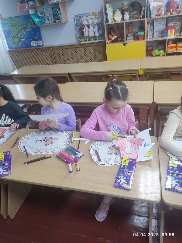 И в честь этого дня, и в рамках тематической недели «Весна. Признаки весны» в подготовительной группе «Затейники» прошло увлекательное тематическое занятие «День скворечника». В ходе, которого ребята рассматривали иллюстрации, из презентации узнали историю возникновения скворечника, их виды и способы изготовления, выполнили упражнение с ладошками «Скворечник», поиграли в подвижную игру «Птички в гнёздышках», выполнили задания «Найди тень скворечника», «Собери скворечник из частей», «Найди одинаковые скворечники», «Помоги птице долететь до скворечника» (лабиринт).