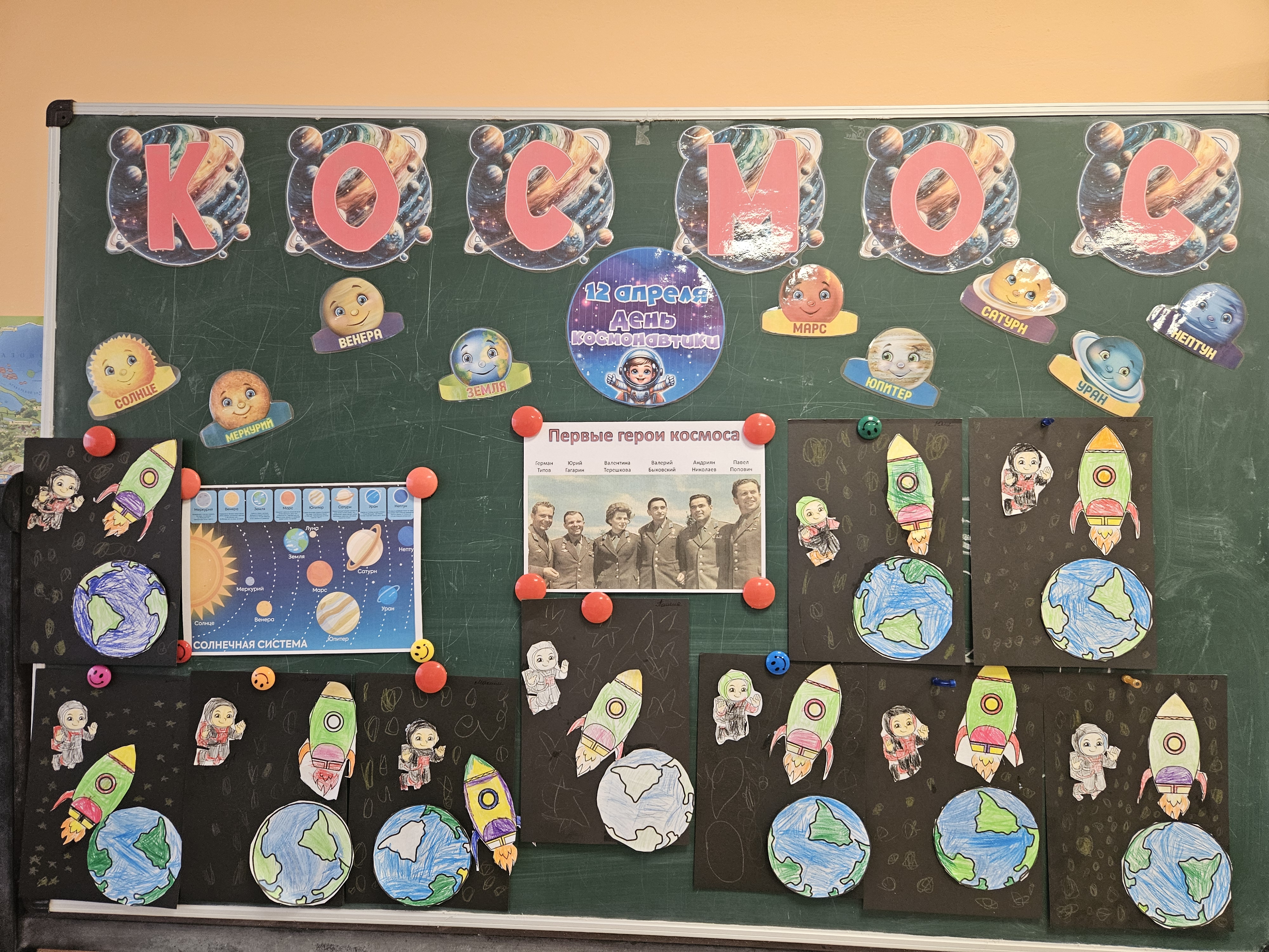 В преддверии Дня Космонавтики в нашем детском саду прошел тематический день, посвященный важному событию в жизни нашей страны. Воспитанники отправились в увлекательное космическое путешествие, полное игр, творчества и интересных открытий. Они узнали о первом полёте человека в космос, планетах Солнечной системы, Вселенной, приняли участие в различных играх, связанных с космосом. Ребята с удовольствием представляли себя «космонавтами в невесомости». Знания, полученные на занятиях, дети закрепили в своих творческих работах.. В группах были оформлены выставки рисунков детей. Тема космоса оказалась интересной, нужной и полезной для детей. Они прониклись чувством гордости и уважения к своей Родине, знаменитым людям — ученым, космонавтам — истинным патриотам своего Отечества.